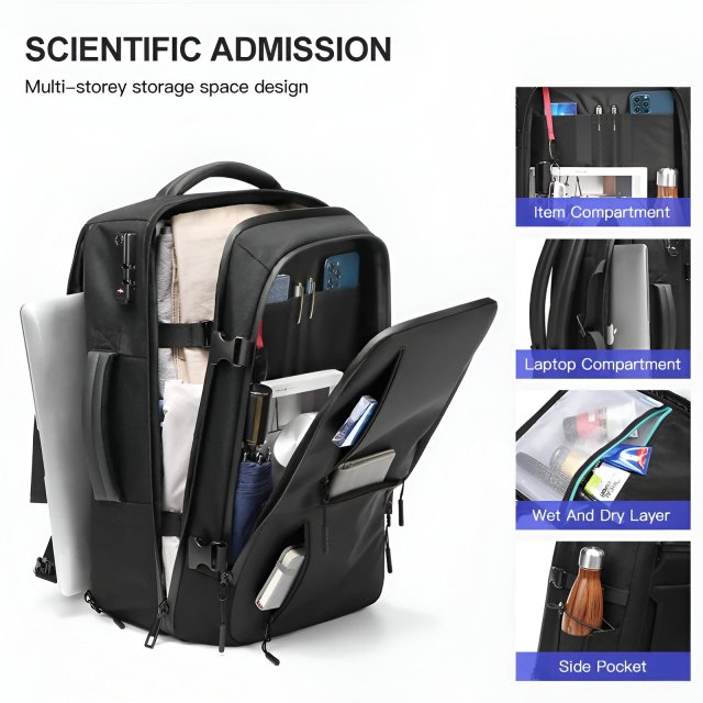 With a large capacity of 20–35 liters, it easily holds your laptop, books, clothes, charger, and daily essentials. Multiple internal pockets help you stay organized, including compartments for your phone, keys, and smaller accessories.