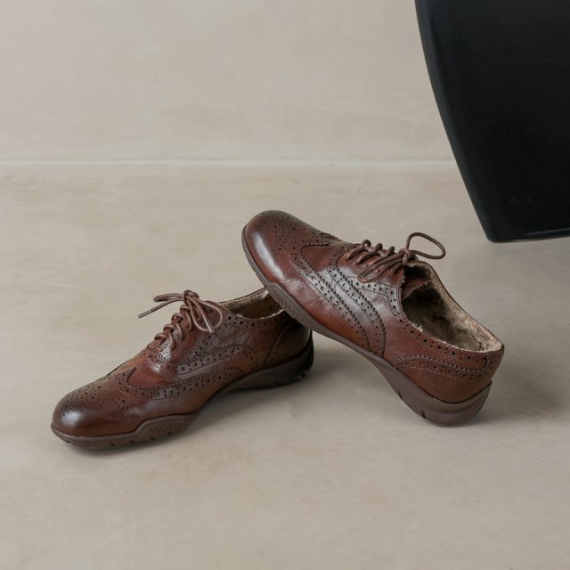 The lace-up closure ensures a secure fit, while the short plush lining and fleece insole provide an extra layer of warmth during the colder months. These loafers are designed to withstand the chill of autumn and winter, offering both style and functionality. The rubber outsole adds durability and traction, making them ideal for all-day wear. Available in classic black and brown, these loafers can easily complement any outfit, from jeans and dresses to skirts and slacks.
