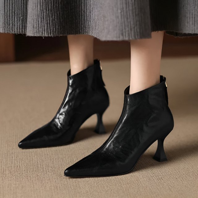 These ankle boots stand out for their balance of style and practicality. The pointed toe creates a slimming effect on your legs, while the minimalist design makes them easy to pair with jeans, skirts, dresses, or tailored trousers. A side zipper ensures quick and easy wear, so you’ll never struggle when getting ready.