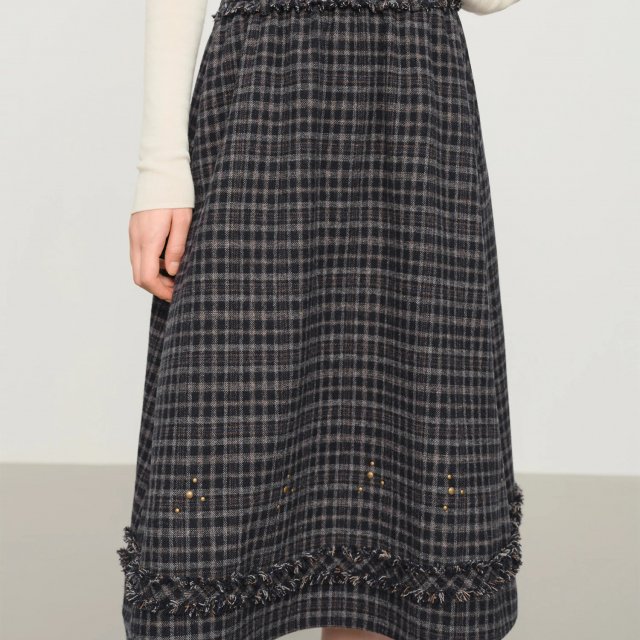 Unlike ordinary winter skirts, this piece combines classic tatting craftsmanship with a clean, modern cut. The empire waist visually elongates your legs, while the A-line shape suits a wide range of body types. Its thoughtful design, from the checkered pattern to the wooden buttons, makes it more than just a basic skirt – it’s a signature piece that brings personality to your winter wardrobe.