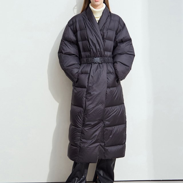 This jacket stands out because it combines high-performance insulation with a modern, structured silhouette. Filled with 85% white duck down, it delivers impressive warmth while staying lightweight and breathable. The wide-waisted design and matching belt allow you to adjust the fit, so you can highlight your shape while staying protected from the cold. The solid color and minimal details make it easy to pair with office outfits, dresses, jeans, or boots.