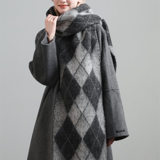 This luxurious cashmere scarf is more than just an accessory – it’s a statement piece. Designed to offer both style and warmth, its soft, plush fabric will keep you cozy through winter while adding a touch of elegance to your look. Whether you’re dressing up for a winter evening or enjoying a casual day out, this scarf is the perfect finishing touch. Its generous size allows you to wear it multiple ways, and the diamond pattern adds a sophisticated flair to any outfit.