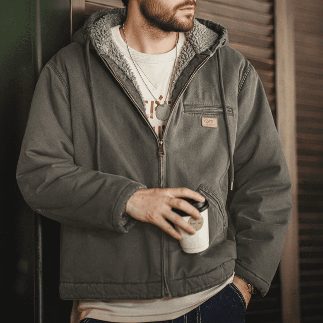 Stay warm without sacrificing your look. This retro-inspired hooded jacket blends rugged canvas with a soft sherpa-style lining to give you reliable comfort all autumn and winter long. Designed for casual wear, it delivers a vintage vibe that works just as well for city streets as it does for weekend getaways. The solid color finish keeps it clean and versatile, making it easy to pair with jeans, boots, or layered streetwear.