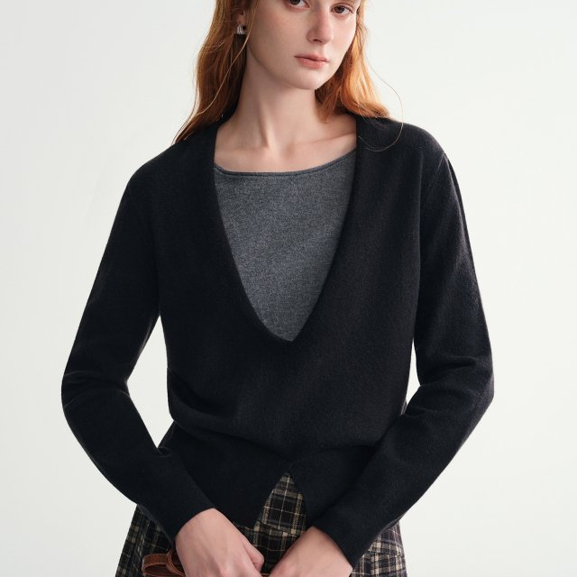 Unlike basic knit tops, this design stands out with its lazy curve silhouette and faux two-piece effect. It gives you the illusion of layering while staying light and easy to wear. The color block contrast visually slims and adds dimension, helping you look put-together with minimal effort.