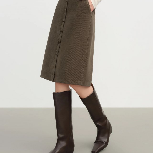 Unlike ordinary winter skirts, this piece is crafted from a soft corduroy fabric made with 97.3% polyester and 2.7% spandex, giving it a smooth finish and a slight stretch for all-day comfort. The empire waistline flatters your figure while the straight silhouette creates a clean, professional shape. Functional pockets add convenience without sacrificing style – perfect for busy commuting days.