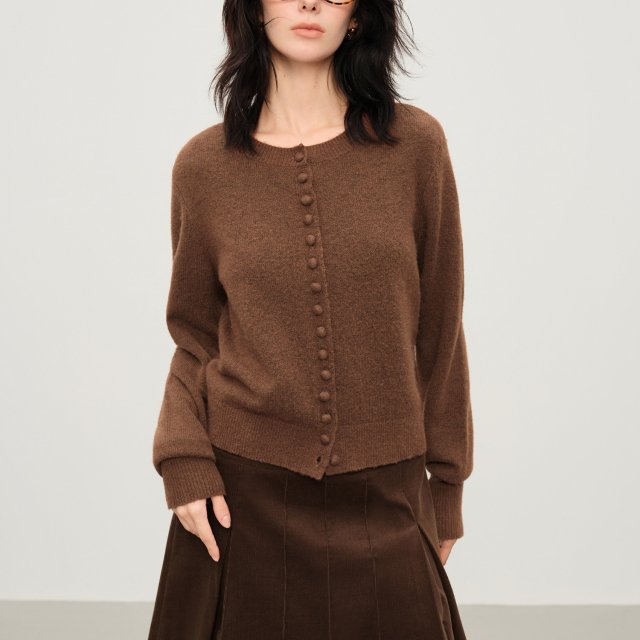 Retro Round-Neck Wool Blend Knit Coatigan for Women