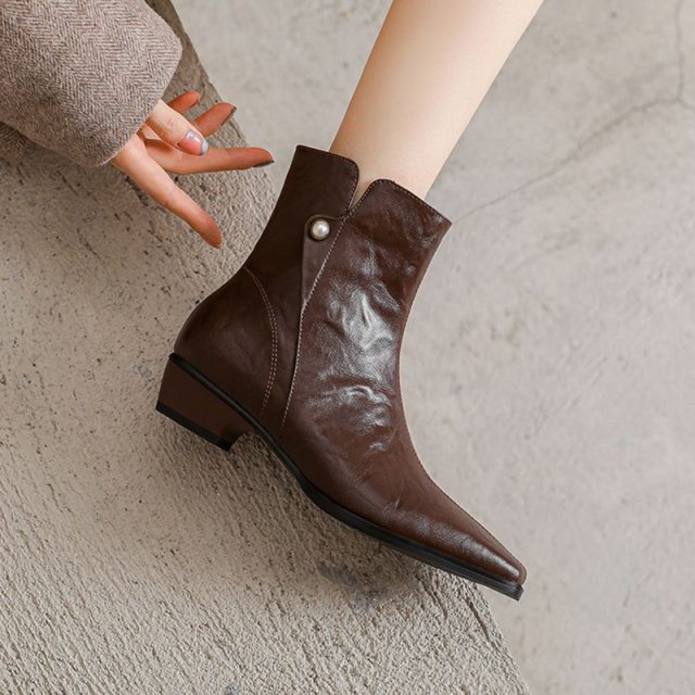 What makes these boots truly special is their blend of simplicity and elegance. The spliced design, smooth leather texture, and pearl zipper create a look that feels both fresh and timeless. They offer the basic features every woman needs in an everyday boot—comfort, durability, and versatility—yet bring a unique touch that sets them apart from ordinary styles.