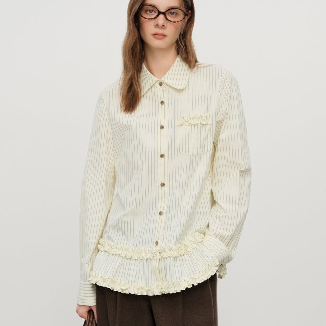 Every element of this shirt is thoughtfully crafted to elevate your look. The vertical stripes create a flattering straight silhouette, while the delicate ruffle accents add a feminine touch that sets it apart. Its single-breasted closure makes it easy to wear and style, whether tucked into trousers or paired with your favorite winter skirt. The blend of polyester, cotton, and viscose gives the material a smooth feel and lasting durability, ideal for long workdays or relaxed weekends.