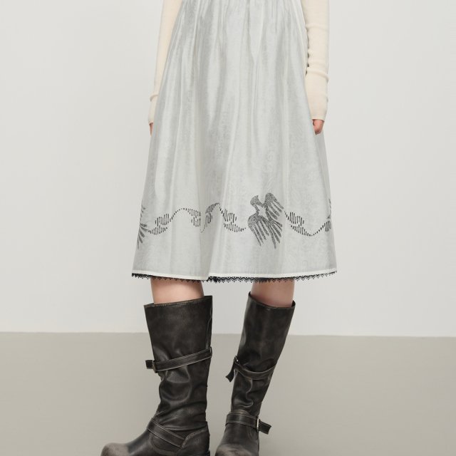 To maintain its shape and softness, hand wash gently, hang to dry, and iron at a maximum soleplate temperature of 230°F. With proper care, this skirt will stay beautiful and wearable season after season.