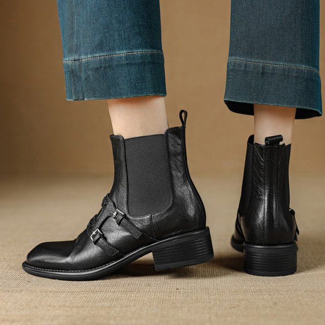 Step into the season with these genuine leather Chelsea boots that combine timeless style with everyday comfort. Designed for fashion-forward women, these boots are the perfect blend of retro charm and modern sophistication. Whether you’re running errands, heading out for a casual day with friends, or simply enjoying a cozy walk in chilly weather, these boots will keep you looking chic and feeling warm. The round toe and chunky heel offer a perfect balance of comfort and flair, making them an essential addition to your wardrobe this winter.