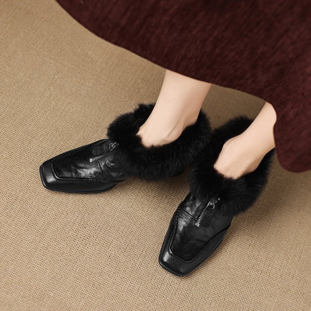 What makes these winter pumps truly special is the combination of sleek design, high-quality materials, and luxurious fur accents. The genuine leather upper gives the shoes a sophisticated, timeless appeal, while the soft fleece lining adds comfort and warmth. The chunky heel provides extra stability, making them perfect for all-day wear, while the square toe adds a modern edge to a classic look. Whether you’re dressing up or keeping it casual, these pumps can effortlessly elevate any outfit.