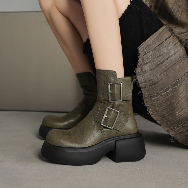 Winter Women’s Platform Ankle Boots with Belt Buckle and Thick Heel