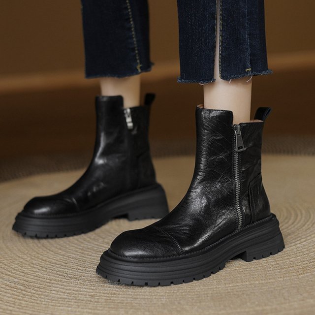 These boots are all about balance: comfort, durability, and style. The soft split leather upper gives a premium feel, while the fleece-lined interior helps keep your feet warm during cool spring and autumn days. The medium chunky heel adds subtle height without sacrificing stability, making them ideal for long hours on your feet. A side zipper allows for quick and easy wear, so you can slip them on and go.