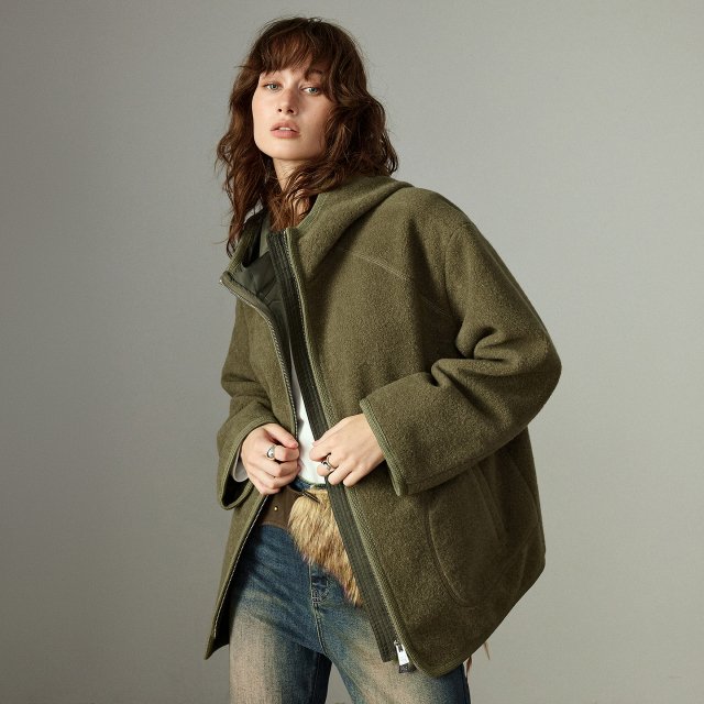With a full-length zipper and button details, it’s easy to wear open for a casual look or fully closed when the cold wind hits. The hood adds extra protection on chilly, breezy days, making it both practical and fashionable.