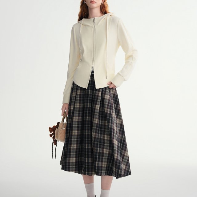 Step into effortless elegance with this women’s retro plaid A-line skirt, designed to bring classic British style into your everyday wardrobe. With its soft brown plaid pattern and flowing pleated silhouette, this skirt adds instant charm to any outfit. It sits at an empire waist and falls beautifully to a mid-calf length, creating a flattering shape that suits most body types and heights. Made from a carefully balanced blend of polyester, viscose, and a touch of spandex, the fabric feels smooth, structured, and comfortable against your skin.