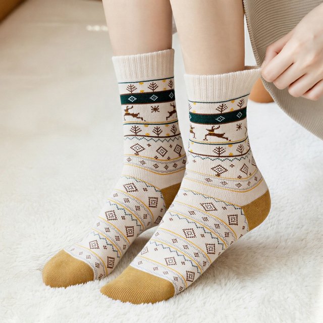 Wrap your feet in soothing comfort with this 5-pair set of thick, warm looped socks designed especially for women who love softness, warmth, and a touch of nature-inspired charm. Crafted with a cozy knit and made from breathable cotton, these socks offer a plush feel that keeps your feet snug without overheating. Their forest-tone palette—rich yellows, greens, and earthy hues—adds a sweet, inviting style to your winter wardrobe.